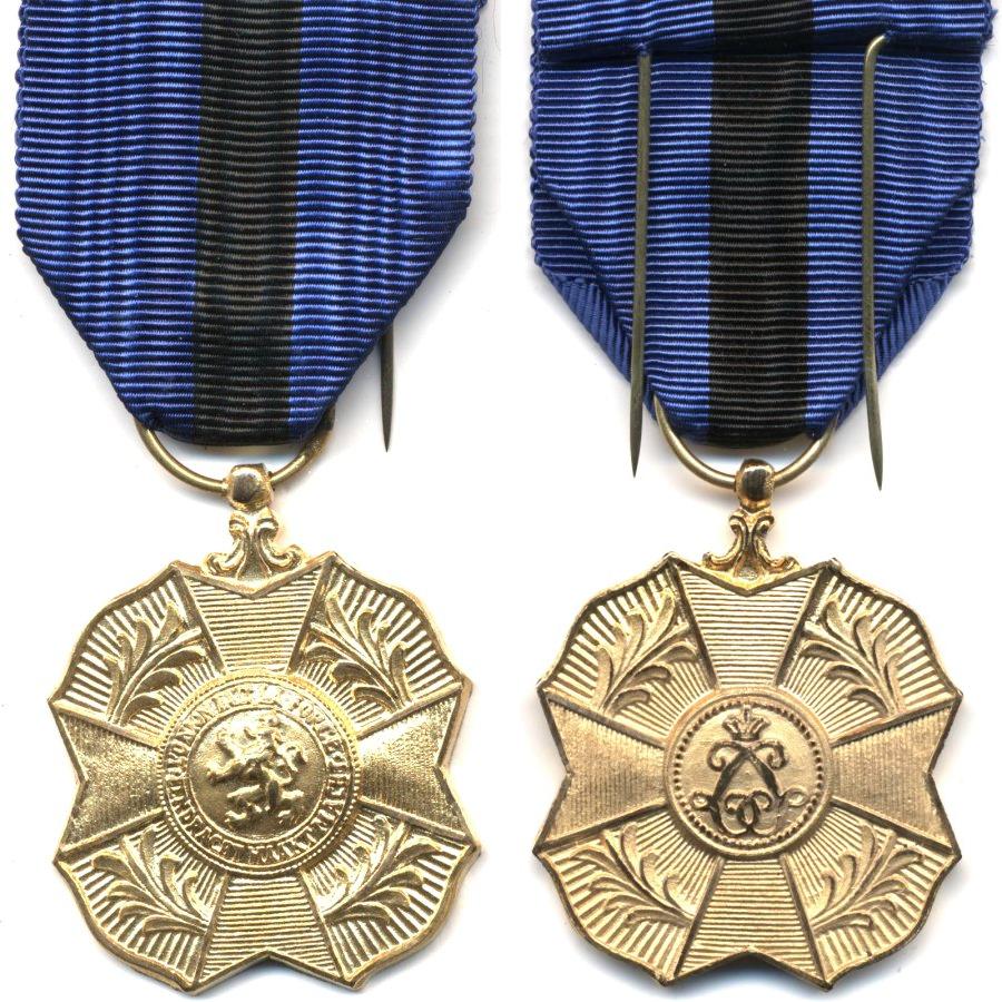 Золотая медаль ордена Леопольда II. Надписи на французском и фламандском языках