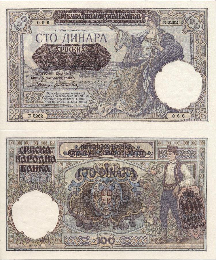 Надпечатка на банкнотах Королевства Югославии 1929 г. "Српска народна банка". UNC