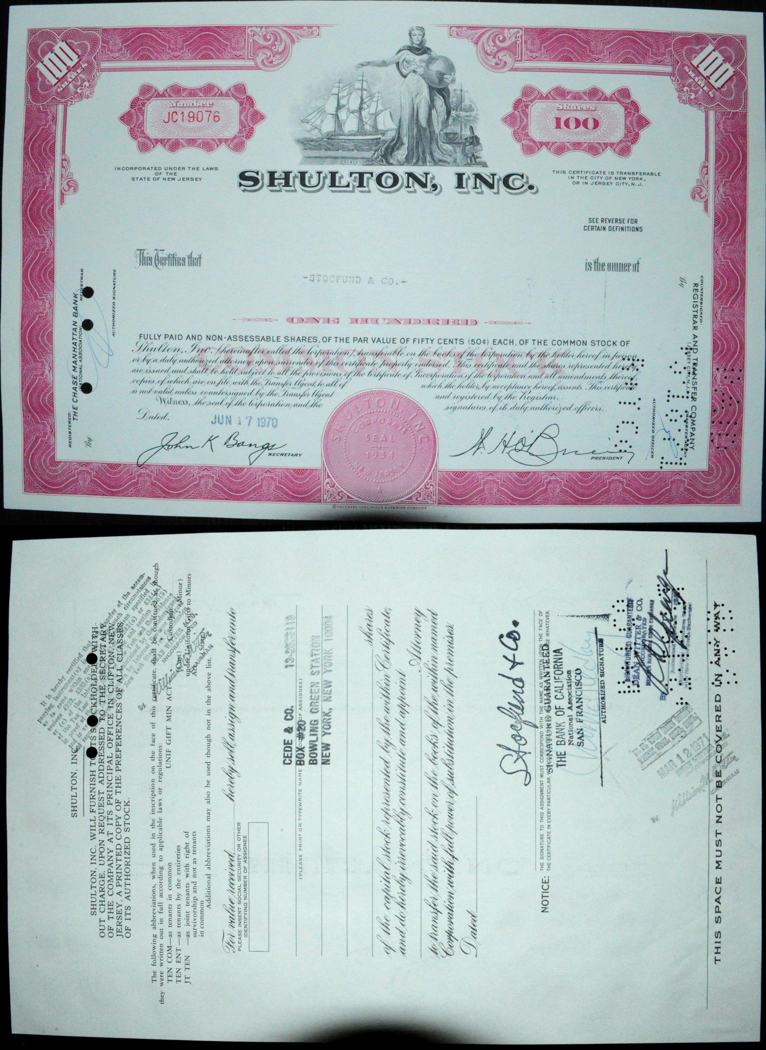 100 акций "Shulton, Inc."