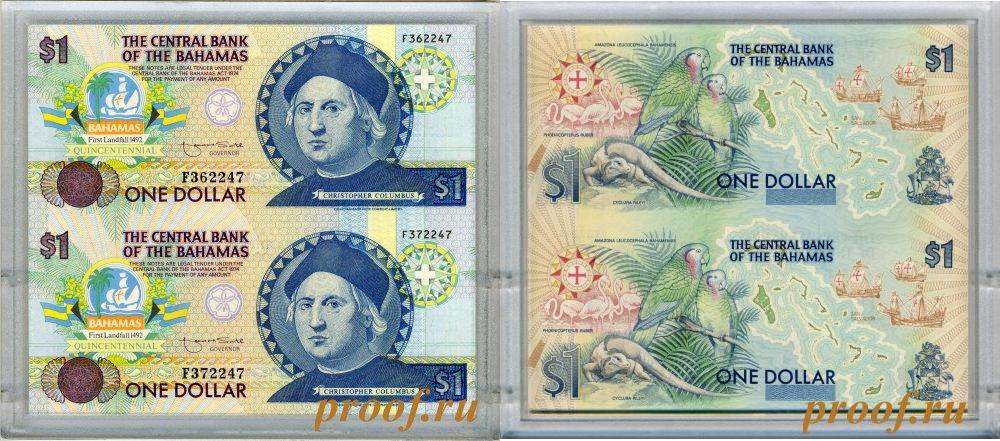Юбилейная банкнота "500 лет открытия Америки". Блок из 2-х банкнот в упаковке из пластика с сертификатом. Специальный выпуск Очень небольшой тираж