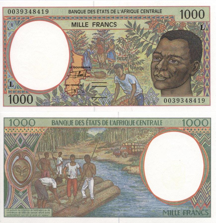 Ñáîð êîôå. Ïëîò, âûðóáêà ëåñà. Áàíêíîòû Öåíòðàëüíîàôðèêàíñêîãî âàëþòíîãî ñîþçà ñ áóêâîé "L", îçíà÷àþùåé Ãàáîí