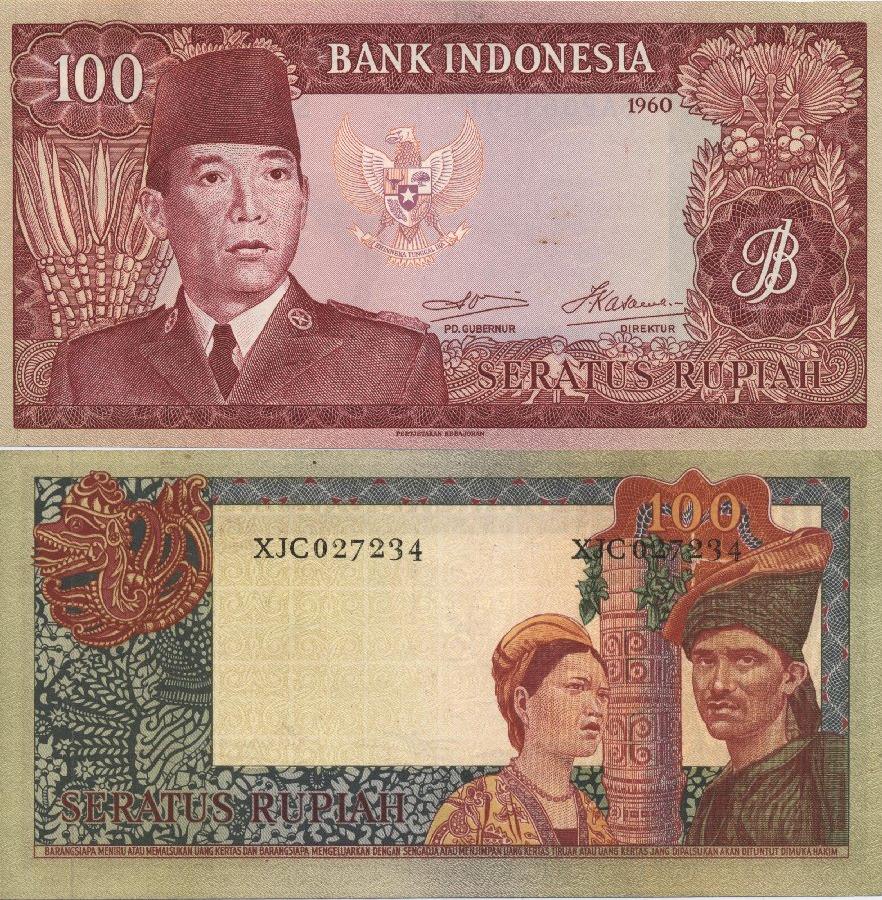 Ïîðòðåò ïðåçèäåíòà Ñóêàðíî. Áàòàêè (ìóæ÷èíà è æåíùèíà). Ðåäêàÿ áàíêíîòà UNC