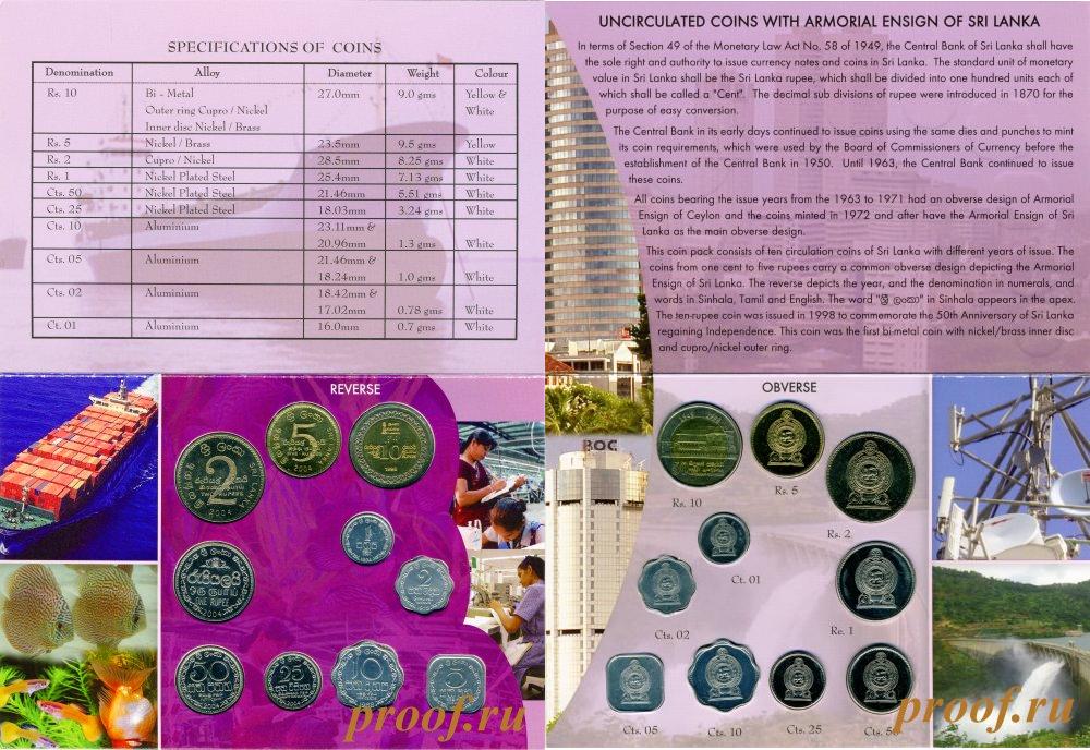 Набор из 10 монет: 1, 2, 5, 10, 25, 50 центов 1, 2, 5, 10 рупий. В блистере. Р-3356