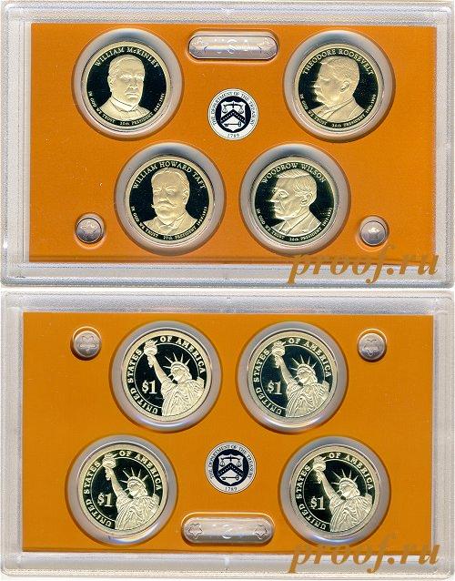 Набор из 4 монет по 1 доллару. Уильям МакКинли, Теодор Рузвельт, Уильям Говард Тафт, Вудро Вильсон. Р-3382