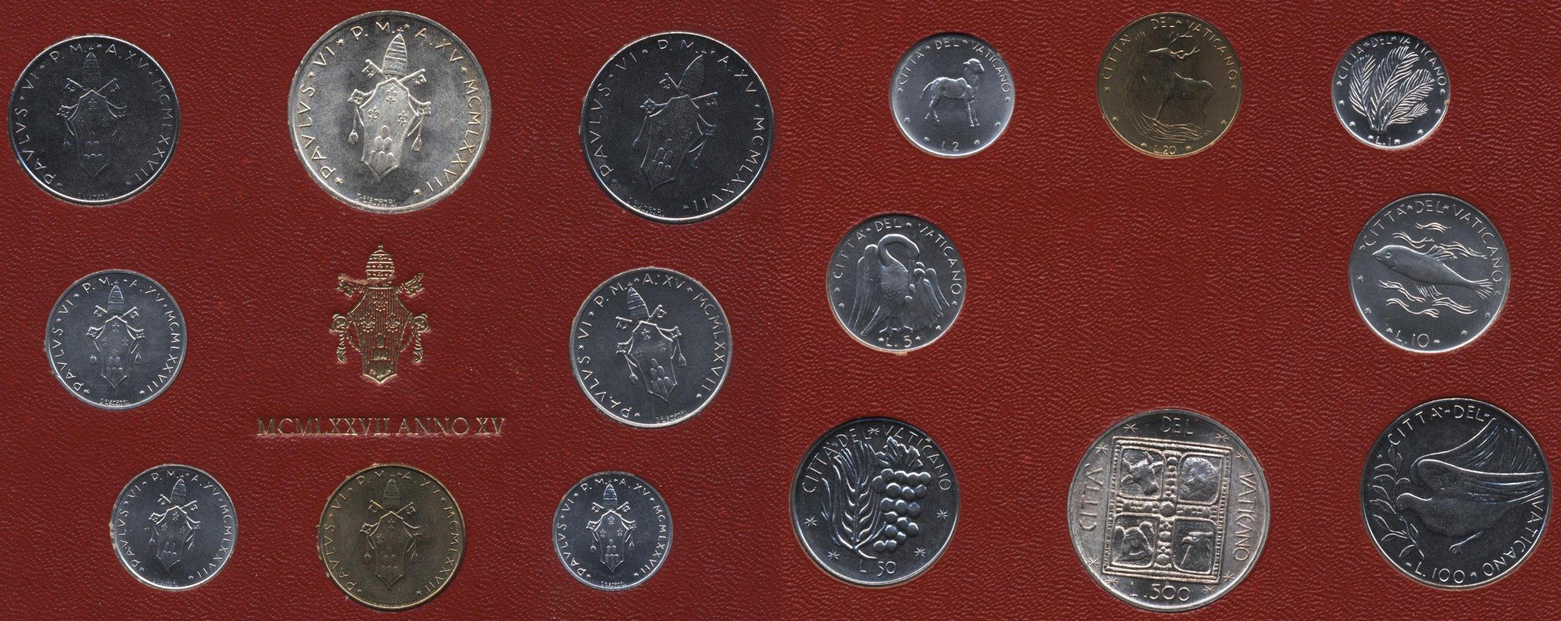 Е-967й : Набор из 8 монет: 1, 2, 5, 10, 20, 50, 100 и 500(Ag835/11г) лир. Павел VI : МОНЕТЫ : ЕВРОПА : ВАТИКАН