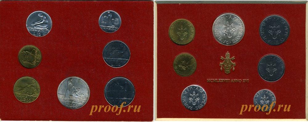Е-1582 : Набор из 6 монет: 10, 20, 50, 100, 200 и 500(Ag835/11г) лир. Павел II : МОНЕТЫ : ЕВРОПА : ВАТИКАН