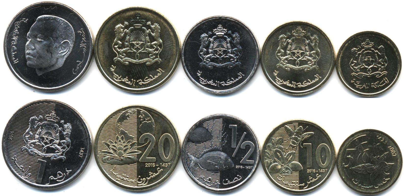 Набор из 5 монет: 5, 10, 20 сантимов 1/2, 1, дирхамов Р-3578