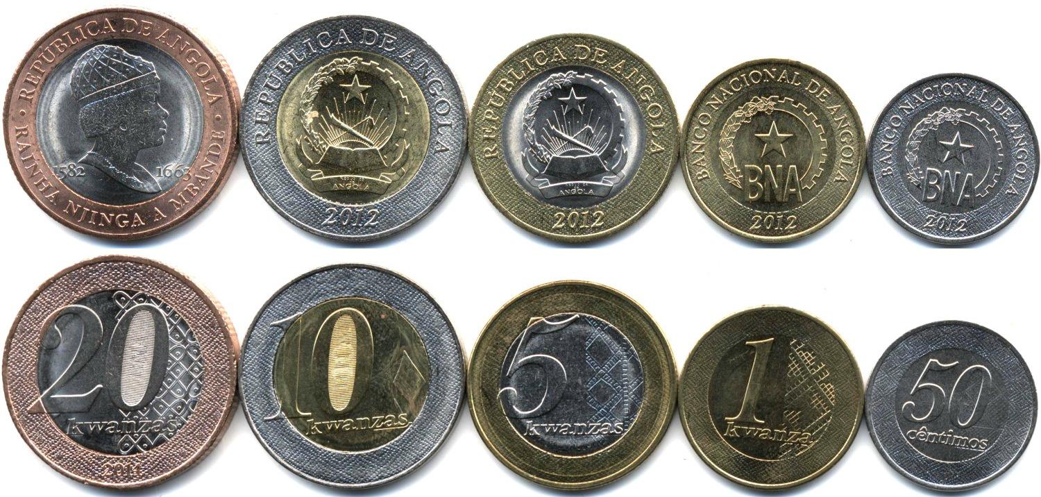Набор из 5 монет: 50 сантимов, 1, 5, 10, 20 кванза