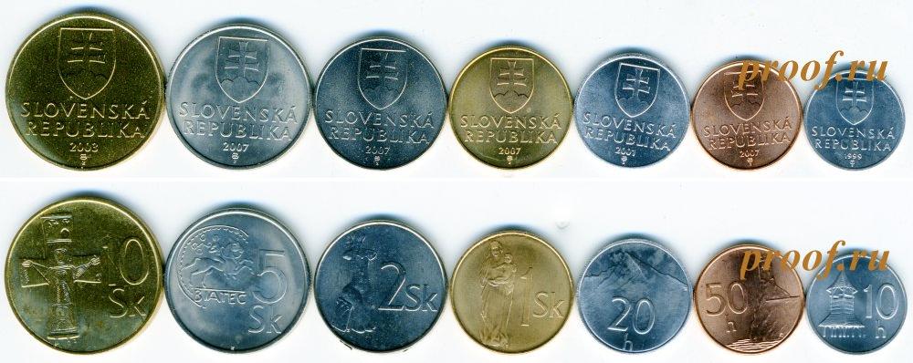 Набор из 7 монет: 10, 20, 50 гелеров, 1, 2, 5 и 10крон. Е-207 set