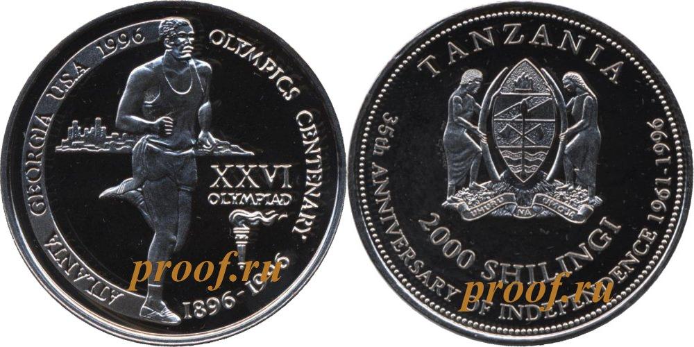 Р-3687 : Пробная монета посвященная 35-летию независимости, XXVI Олимпийским играм в США, 100-летие современных Олимпийских игр. Бег. : МОНЕТЫ : АФРИКА : ТАНЗАНИЯ