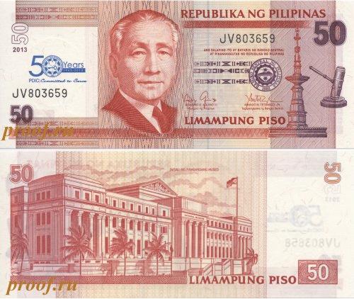 Серхио Осмена. Здание парламента. Юбилейная банкнота. Надпечатка 50 лет филиппинской корпорации