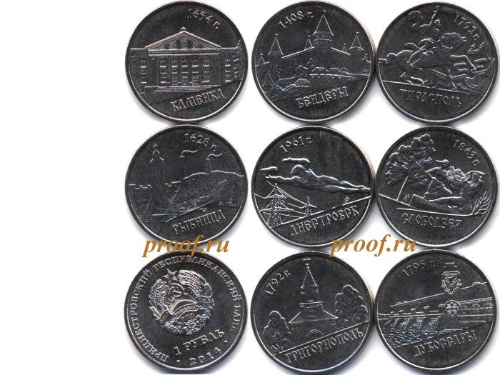 Приднестровье. Набор из 8 монет Города: Тирасполь, Дубоссары, Бендеры, Каменка, Григориополь, Слободзея, Рыбница, Днестровск.