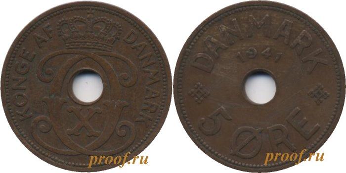 Монета с отверстием. Отличается от датских монет довоенного периода отсутствием знака монетного двора. Чеканилась в Лондоне. Редкая