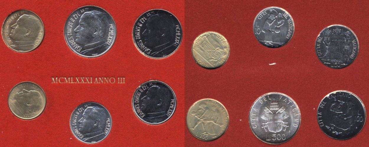 Е-967в : Набор из 7 монет: 10, 20, 50, 100, 200, 500 и 1000лир(Ag835/ 14,6г.) Иоанн Павел II Е-967в : МОНЕТЫ : ЕВРОПА : ВАТИКАН