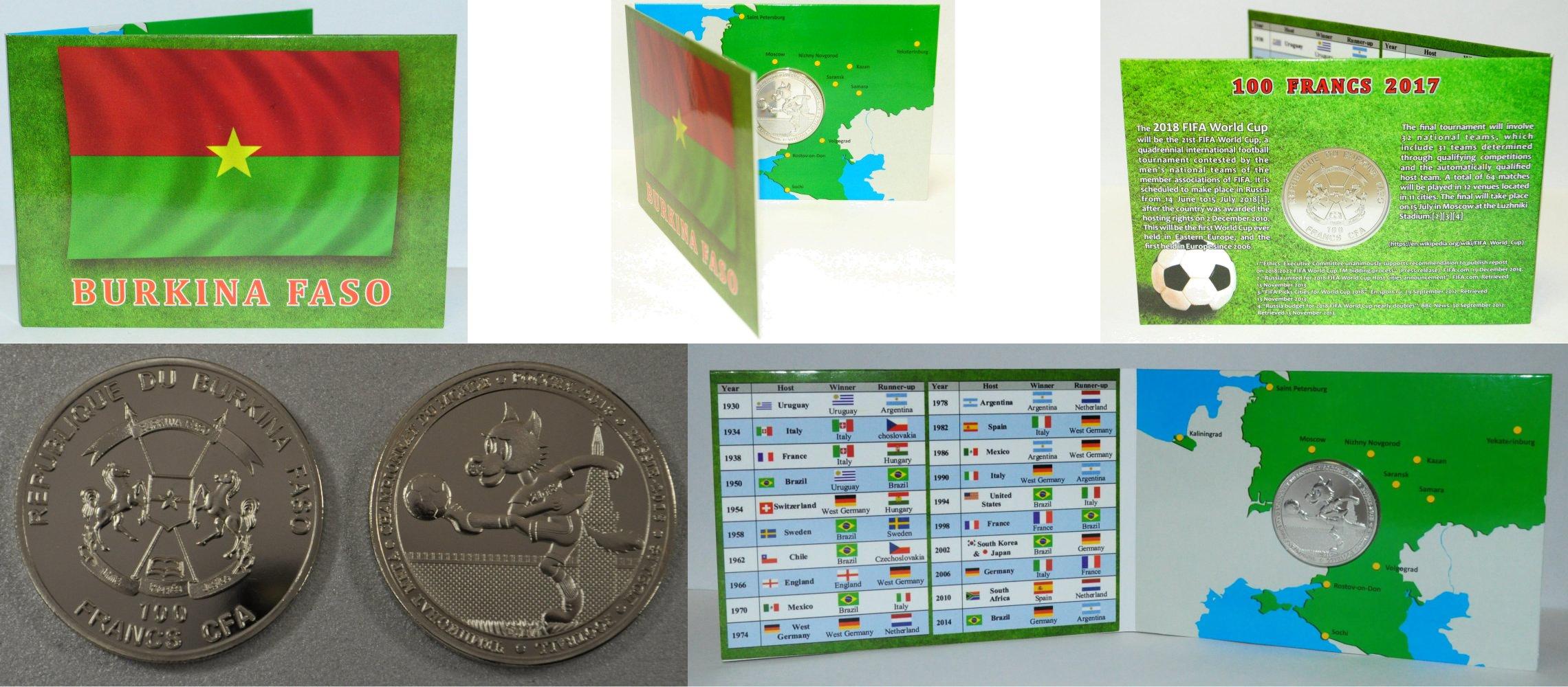 Первая медно-никелевая монета Буркина Фасо, а также первая иностранная монета, связанная с Чемпионатом Мира по футболу в России. В блистере. FIFA-2018 Тип 1