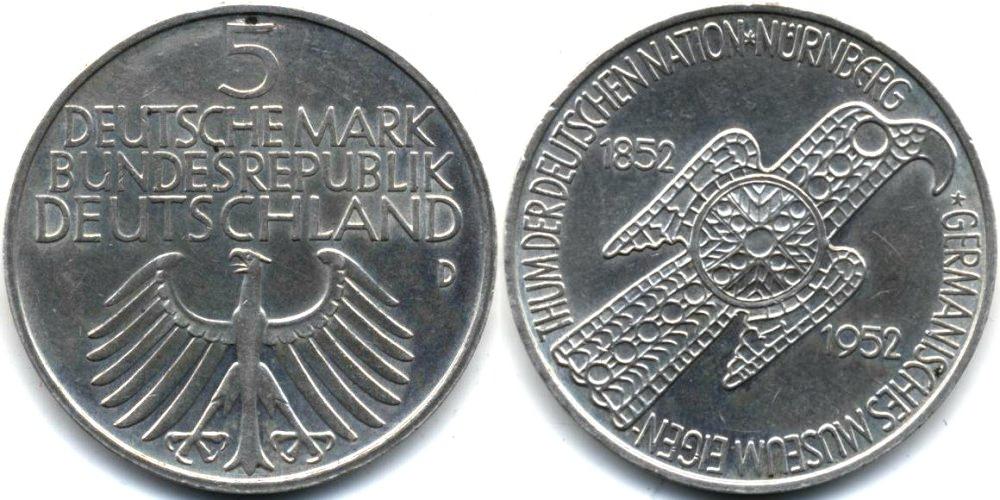 100-летие национального музея в Нюрнберге. Самая редкая и дорогая монета из 5 марок ФРГ