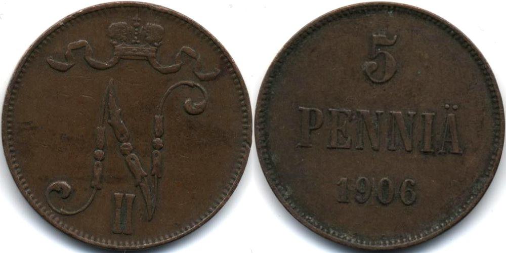 Е-81г : Николай II, с вензелем VF-XF : МОНЕТЫ : МОНЕТЫ РОССИИ ДО 1917 ГОДА : МОНЕТЫ ВЕЛИКОГО КНЯЖЕСТВА ФИНЛЯНДСКОГО В СОСТАВЕ РОССИЙСКОЙ ИМПЕРИИ : МЕДНЫЕ МОНЕТЫ