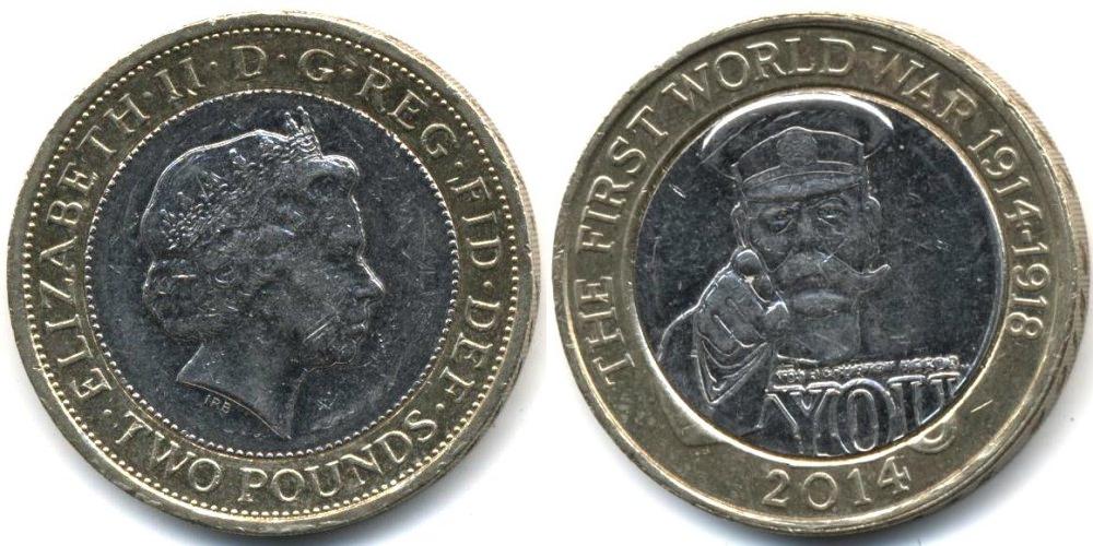 ВЕЛИКОБРИТАНИЯ:НЕСЕРЕБРЯНЫЕ МОНЕТЫ:2 ФУНТА СТЕРЛИНГОВ