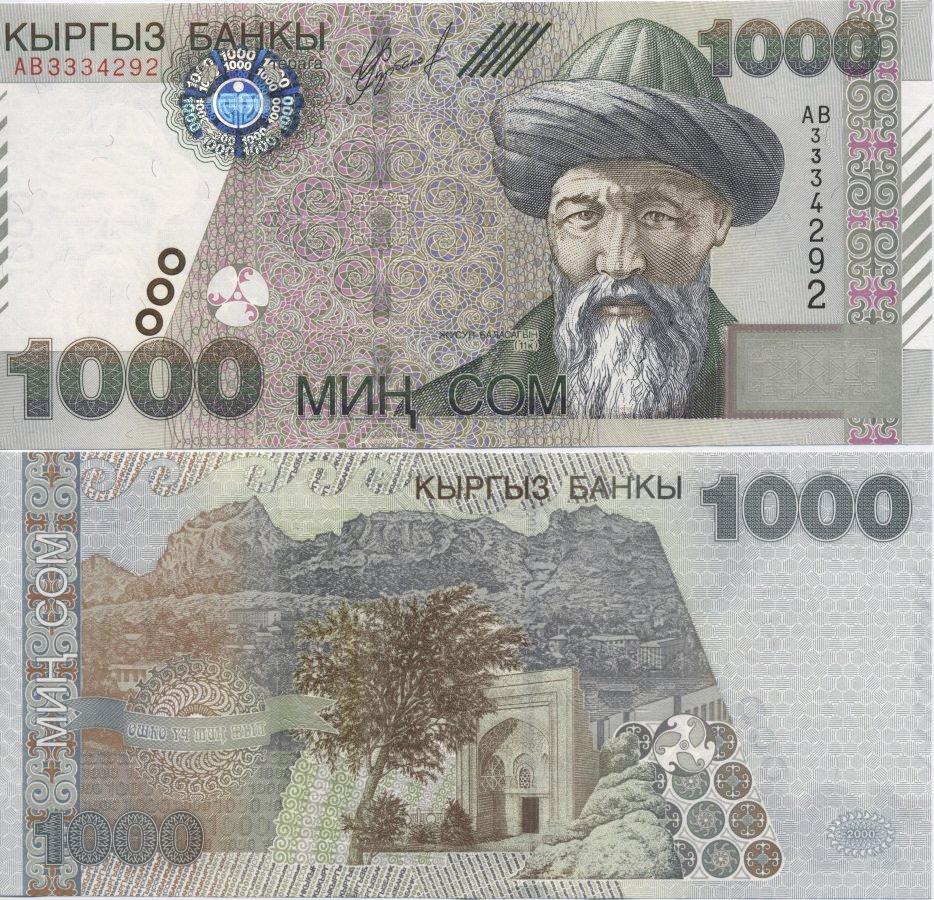 Ïèñàòåëü Þñóô Áàëàñàãóíè (XI âåê). Ìå÷åòü Òàõòû Ñóëàéìàí íà ôîíå Ñóëàéìàí-Òîî, íàäïèñü íà êèðã. ÎØÊÎ × ÌÈ ÆÛË — «3000 ëåò Îøó»