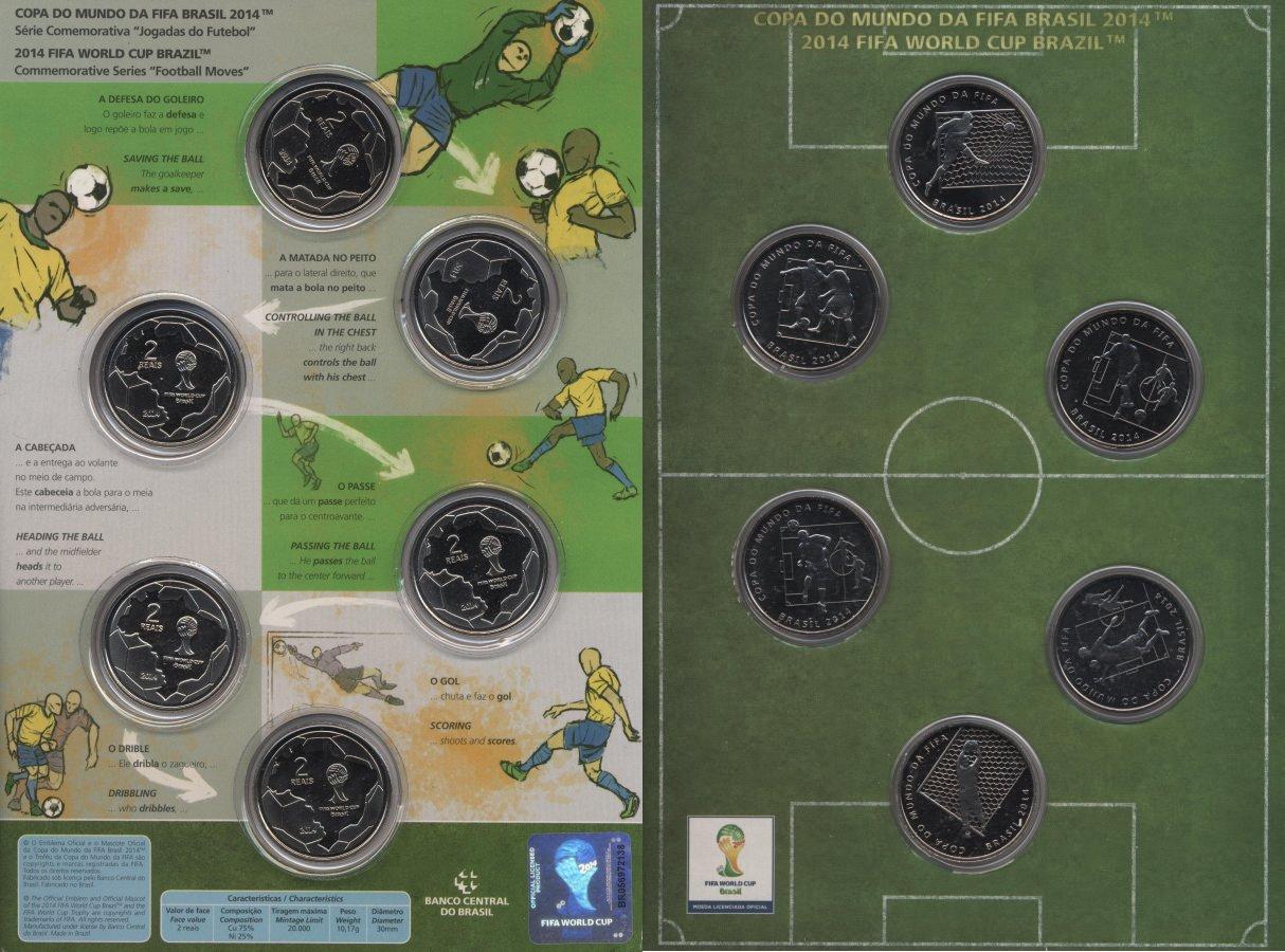 Набор из 6 монет по 2 реала. Чемпионат мира по футболу. Бразилия-2014. В блистере