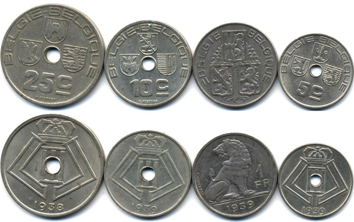 Набор из 4 монет: 5, 10, 25 сантимов и 1 франк. BELGIE-BELGIQUE. VF-XF