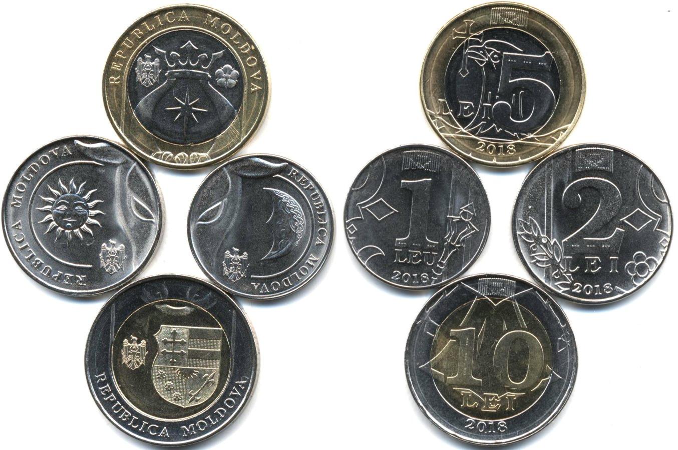 Набор из 4 монет: 1, 2, 5 и 10 лей
