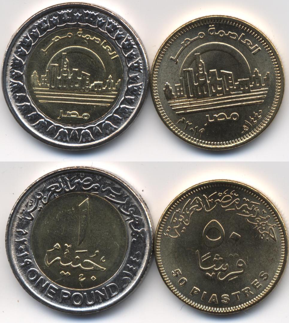 Íàáîð èç 2 ìîíåò: 50 ïèàñòðîâ è 1 ôóíò. Âåäèàí-íîâàÿ ñòîëèöà Åãèïòà