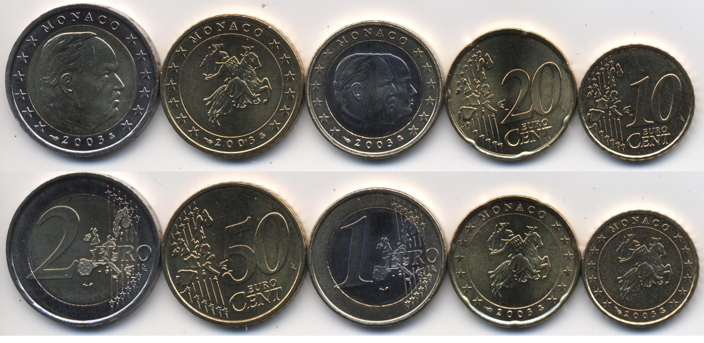 Набор из 5 монет: 10, 20, 50 центов и 1, 2 евро