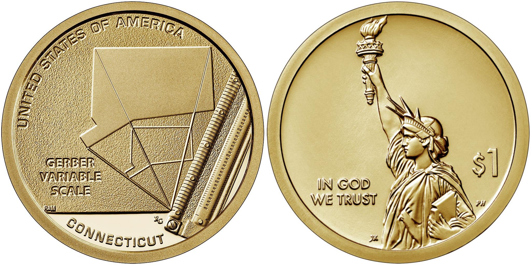 Р-4705 : Американские инновации. Шкала переменных Гербера. Шестой патент D : МОНЕТЫ : СЕВЕРНАЯ АМЕРИКА : США : СЕРИЯ "ИННОВАЦИИ"