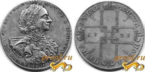 Копия рубля Петра I московского монетного двора с особым рисунком портрета ("Тигровик")