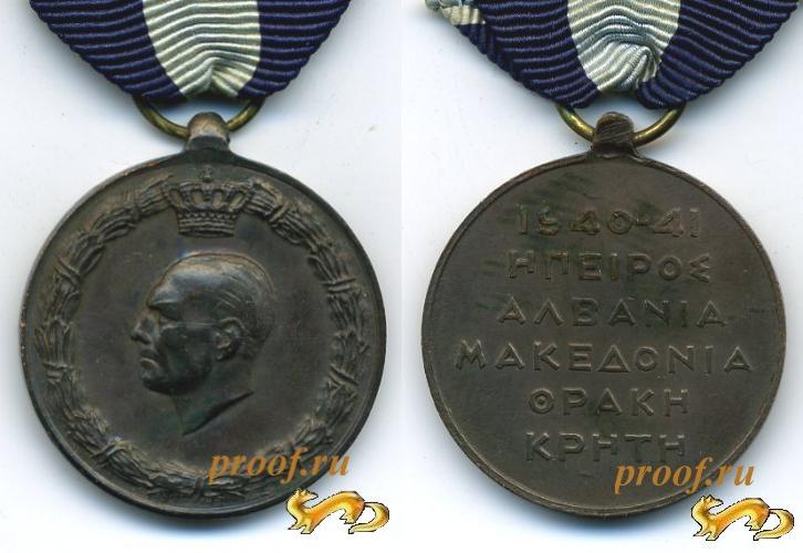 Медаль за участие в боевых действиях на Балканах в 1940-41. Портрет Георга II