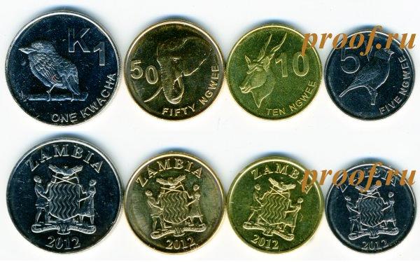 Набор из 4 монет: 5, 10, 50 нгве и 1 квача. Животные. Р-98 set