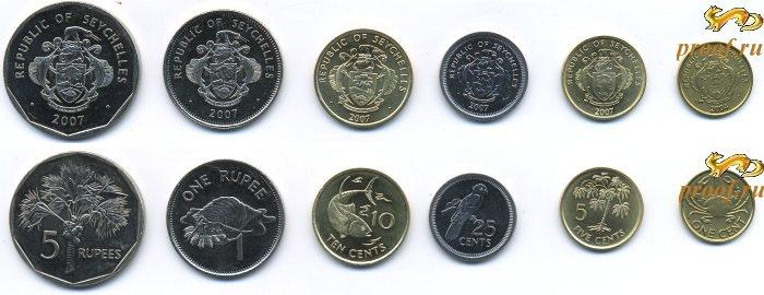 Набор из 6 монет: 1, 5, 10, 25 центов, 1 и 5 рупий. Флора и фауна. Р-210 set