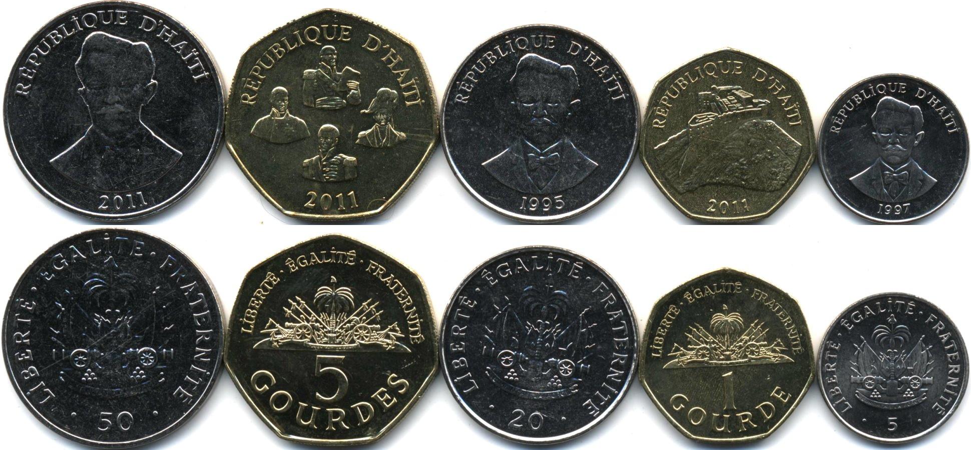 Комплект из 5 монет: 5, 20, 50сантимов, 1 и 5 гурдов. Р-317