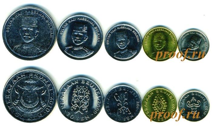 Набор из 5 монет: 1, 5, 10, 20, 50 сен. Портрет султана. Национальные узоры Р-403 set