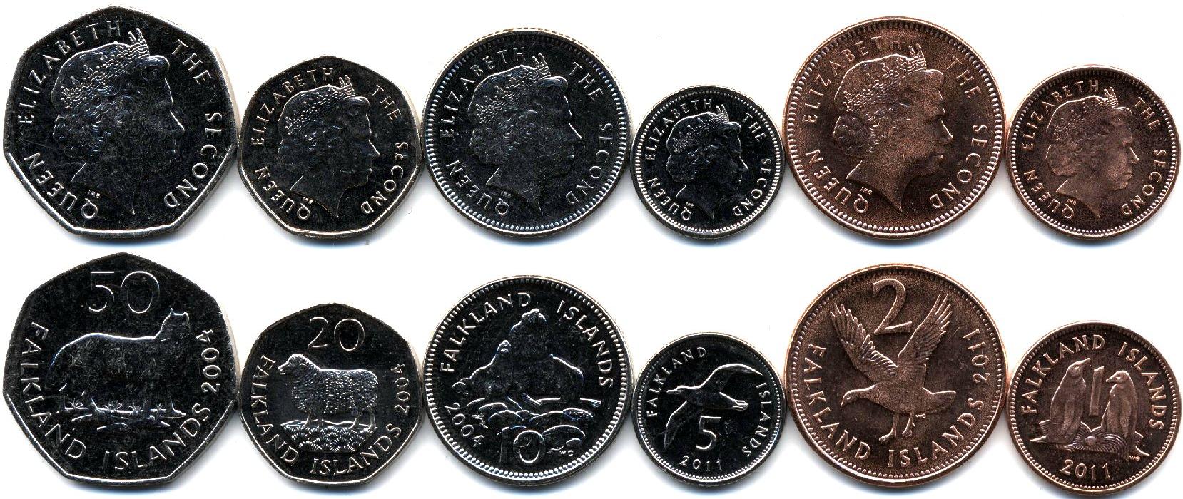 Набор из 6 монет: 1, 2, 5, 10, 20 и 50 пенсов. Монеты с изображениями местных животных.