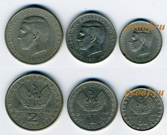 Набор из 3 монет: 50 лепта, 1 и 2 драхмы. Константин. Е-814 set
