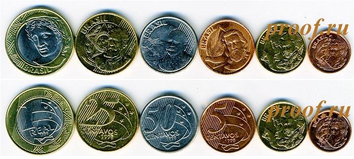 Набор из 6 монет: 1, 5, 10, 25, 50 сентаво и 1 реал(бимет) Р-1161 set