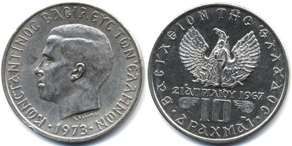Константин II. Феникс. С датой "1967". Диктатура "Черных полковников"