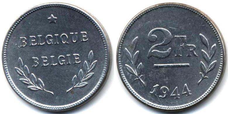 Монета отчеканена в США на заготовках монет 1ц .1943г. и предназначалась для расчетов во время нахождения американских войск в Бельгии в период II Мировой войны
