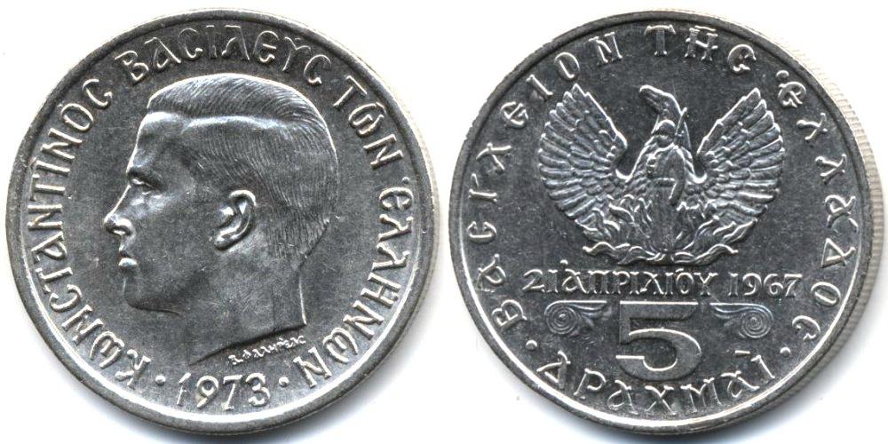 Константин II. Феникс. С датой "1967". Диктатура "Черных полковников"