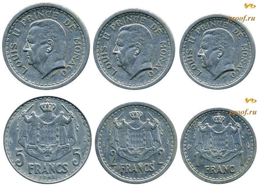 Набор из 3 монет: 1, 2 и 5 франков. Принц Луи II. Е-1005