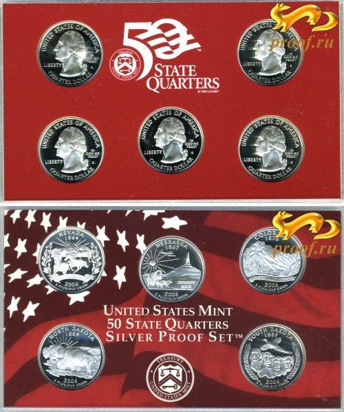 США:“КВОТЕРЫ” - МОНЕТЫ 25 ЦЕНТОВ:"КВОТЕРЫ" В СЕРЕБРЕ В ПРУФЕ