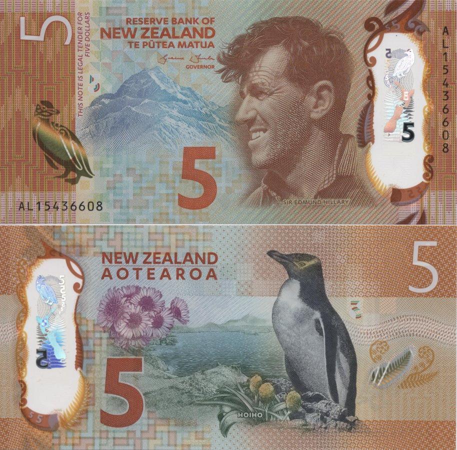 Портрет сэра Э. Хиллари. Пингвин хойхо. Многоцветная полимерная банкнота