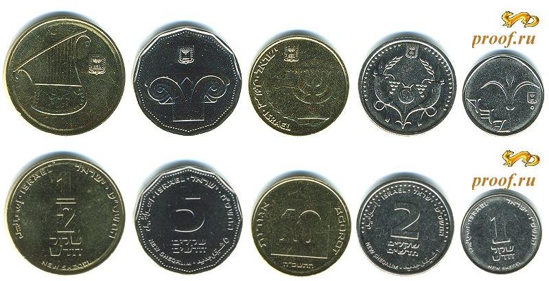 Набор из 5 монет: 10 агорот, 1/2, 1, 2, 5 шекелей. 1985-...