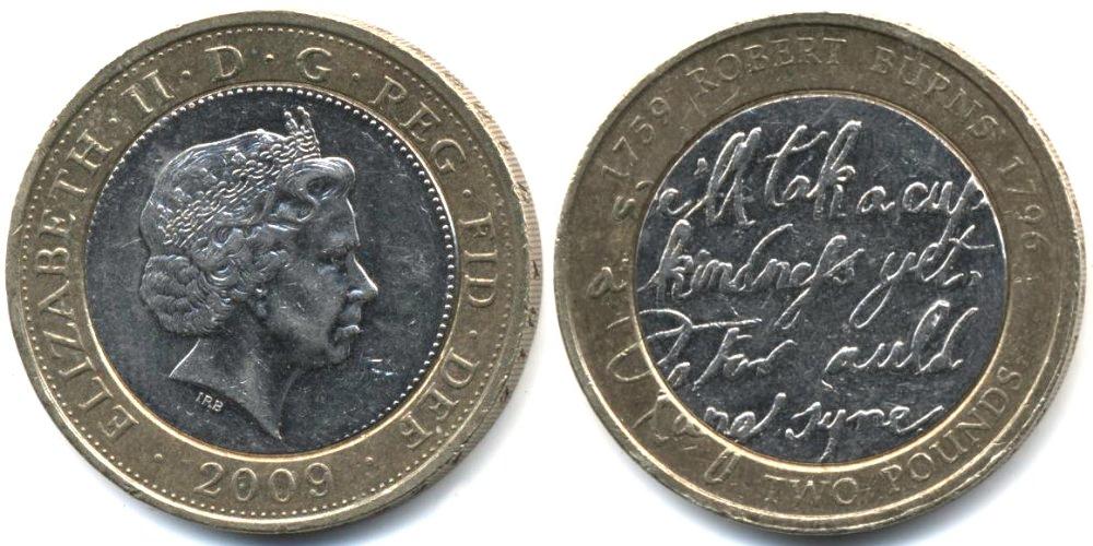 ВЕЛИКОБРИТАНИЯ:НЕСЕРЕБРЯНЫЕ МОНЕТЫ:2 ФУНТА СТЕРЛИНГОВ