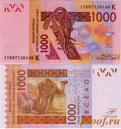 Местный идол. Верблюды. Банкноты Западноафриканского валютного союза с буквой "K", означающей Сенегал
