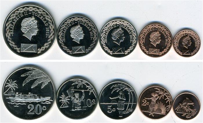 Набор из 5 монет: 1, 2, 5, 10 и 20 центов. Лодка, местные жители ...Р-3204 set