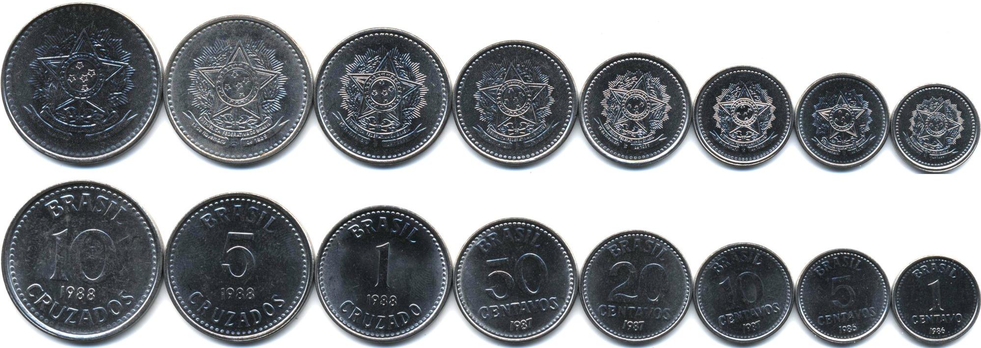 Набор из 8 монет: 1, 5, 10, 20, 50 сентаво, 1, 5, 10 крузадо. Р-3251 set