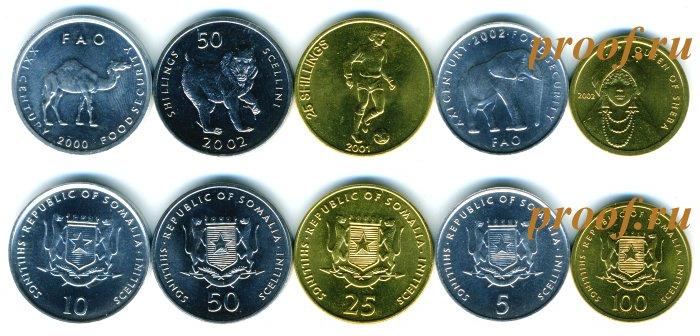 Набор из 5 монет: 5, 10, 25, 50 и 100 шиллингов. Р-809б set